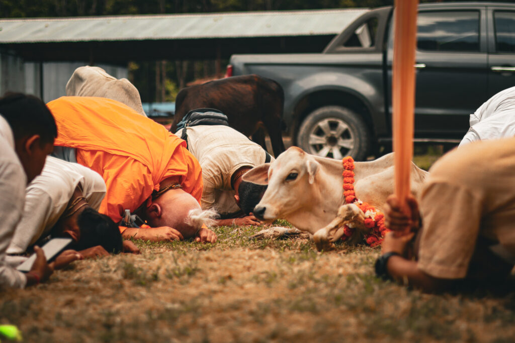 The Guided Gaushala Parikrama at Tilottama Gaushala is a spiritually enriching experience that allows devotees to walk through the gaushala with reverence, understanding, and gratitude towards Gau Mata.