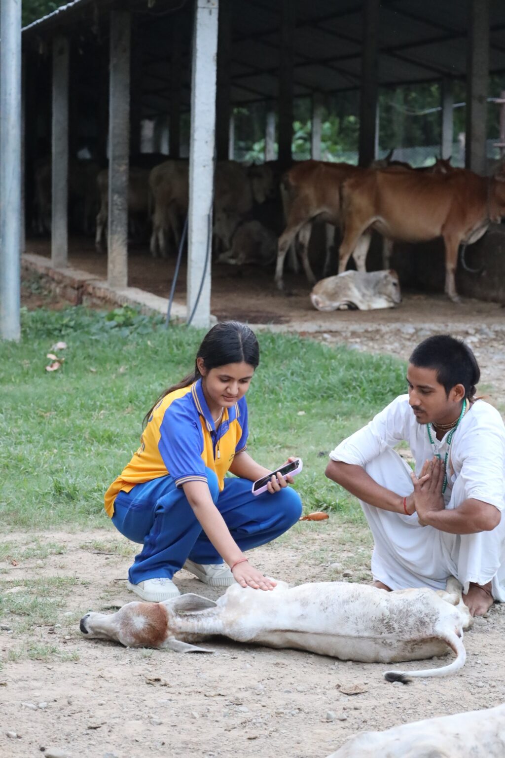 Everyone is welcome! Experience the peace of our Gaushala, connect with cows, and enjoy nature. Open daily: 5:00 AM – 7:00 PM | No booking or fees.